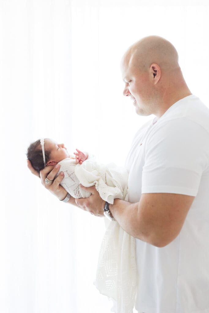 Your newborn stays comfortable the entire time. We follow your baby’s cues. We allow extra time for feeding, burping, soothing, and cuddling. There is no rush. Sessions usually last up to three hours, which lets parents stay relaxed and present.