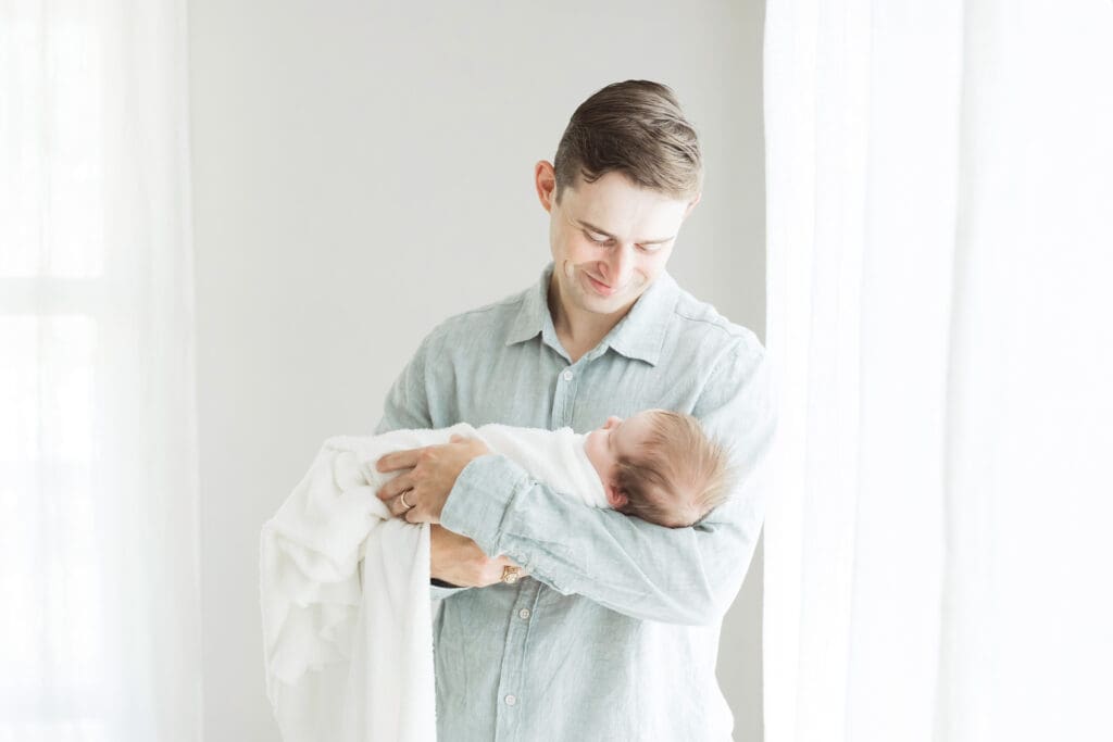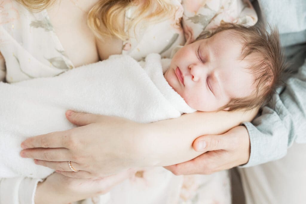 One of the biggest reliefs for new parents is realizing how little is required from them. We guide posing gently and naturally. Many images are captured while you are seated comfortably or simply holding your baby close.