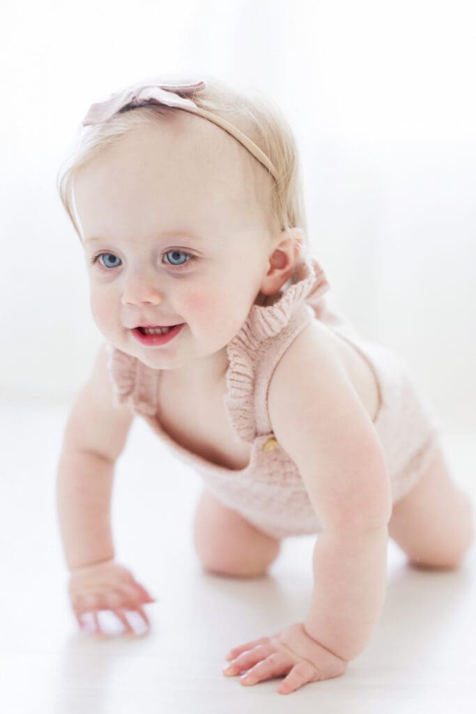 A full, uninhibited laugh. The way your baby moves toward you with excitement. The quiet look of concentration as they explore something new. These are the moments that continue to hold meaning long after the session is over.